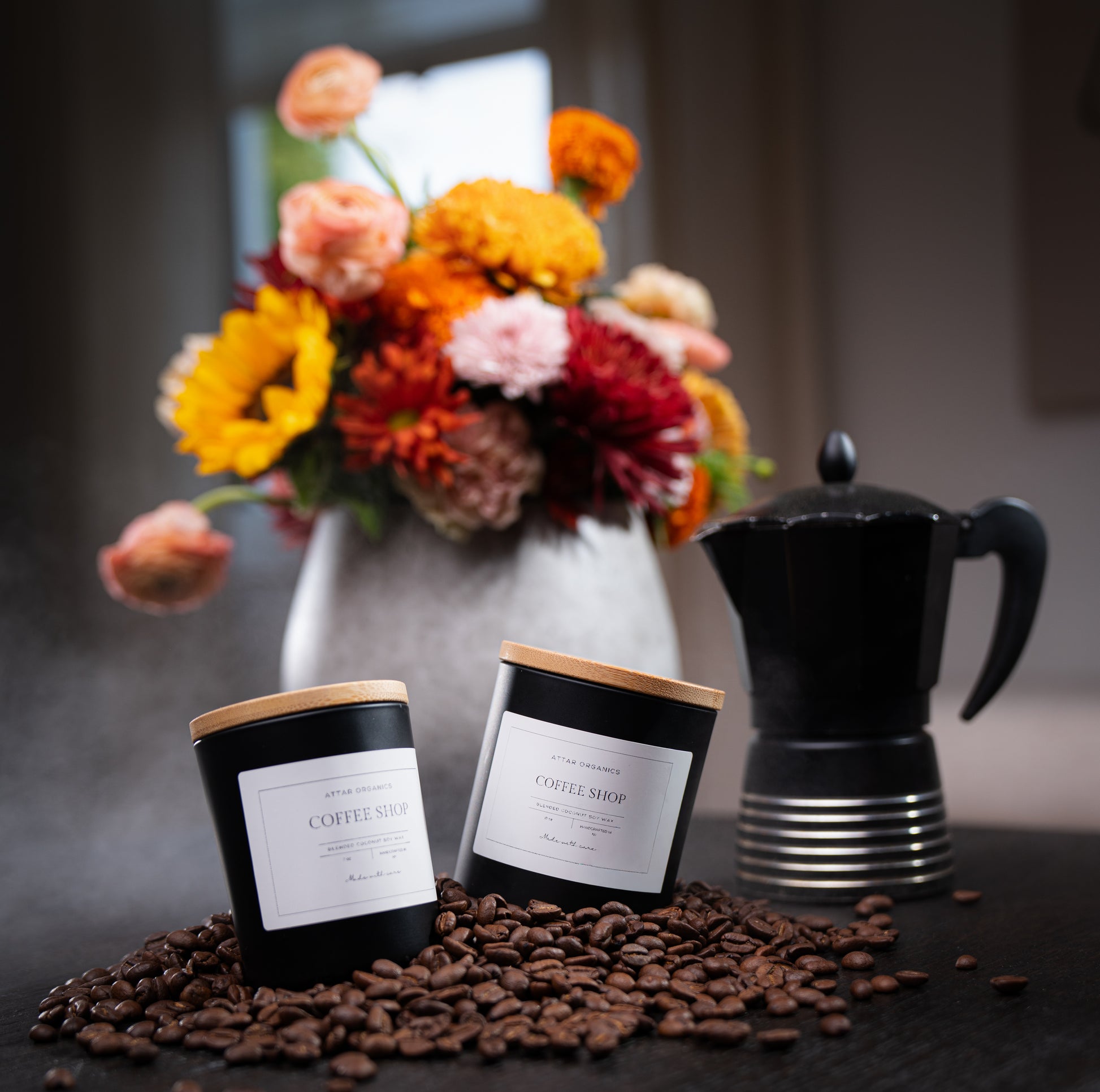 Step into the inviting aroma of your favorite café with the Coffee Shop candle. Made with natural essential oils and rich coconut soy wax, this candle fills your space with the comforting scent of freshly brewed coffee, creamy vanilla, and a touch of caramelized sugar. Subtle hints of roasted hazelnuts and warm cinnamon complete this cozy blend, perfect for coffee